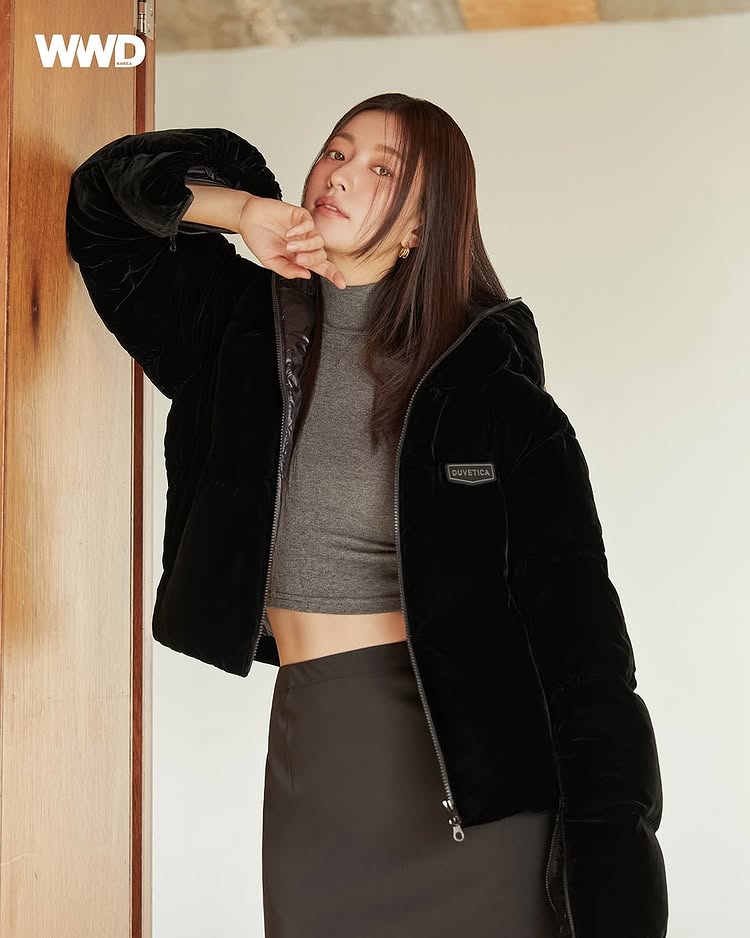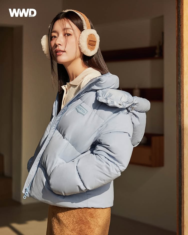 The cover story is built around the concept of love and courage seeping in like the warmth of winter sunlight. Shot in a calm, understated setting with soft lighting, Han Hyo-joo moves seamlessly between minimalist modern looks and gentle femininity. From sharply tailored coats to fitted knits and long dresses, she anchors each cut with a quiet yet undeniable presence, capturing the grounded aura of an actress in her thirties.